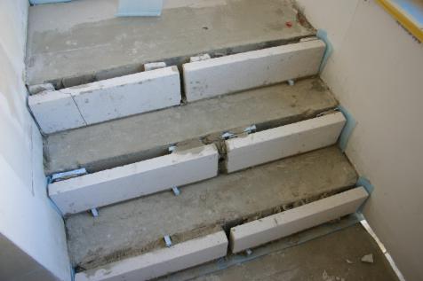 ein Treppenhaus wird für die Dünnbettverlegung auf Schrittmaß eingerichte: